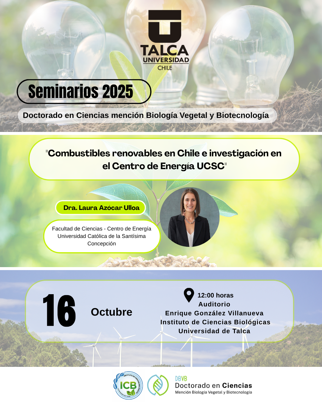 Jueves 12 de diciembre – 12:00 horas. Auditorio “Enrique González Villanueva”. Instituto de Ciencias Biológicas. Campus Talca.
